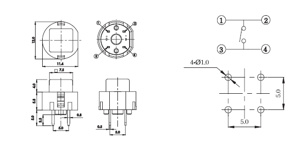 •Dielectric Strength : AC 250V (50/60 Hz for 1 minute)