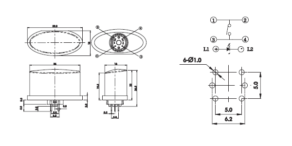 ·36 mm 34.5 x mm LED开关