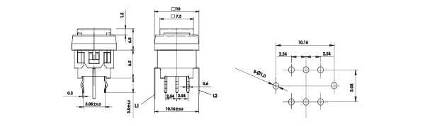 · 10 mm x 10 mm x 9.5 mm LED the switch