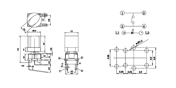 ·7.5 mm 14.5x mm LED开关