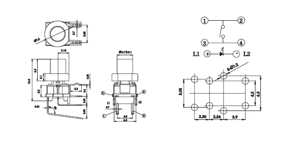 •Dielectric Strength : AC 250V (50/60 Hz for 1 minute)