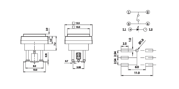 ·12.5 mm x 10 mm x 9.2 mm LED开关