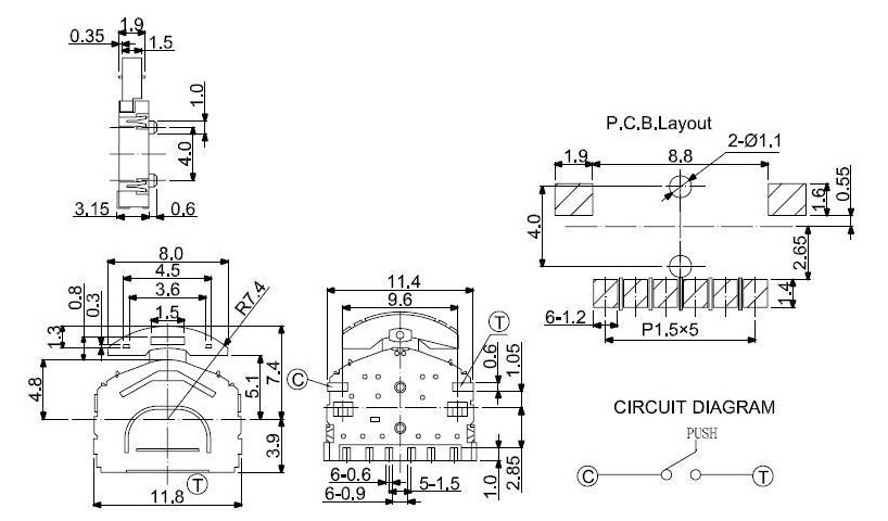 7.CONTACT RESISTANCE: ≤ 300 mΩ (select) ≤ 1Ω (left & right)