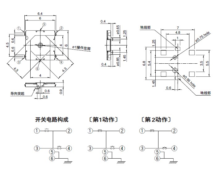 3.Operating force : 1st 80g.2nd 250 ± 50g