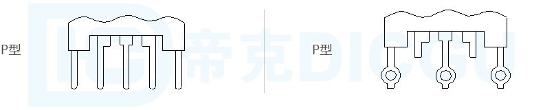 端子代号:“P”表示插P.C.B板型端子,端子外露部分如下图所示;“N”表示焊线型端子,端子外露部分如下图所示: