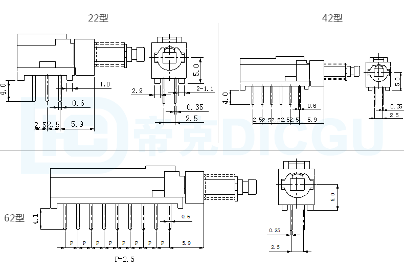 3. 回路代号:“22”表示回路为2P2T型;“42”表示回路为4P2T;“62”表示回路为6P2T型。