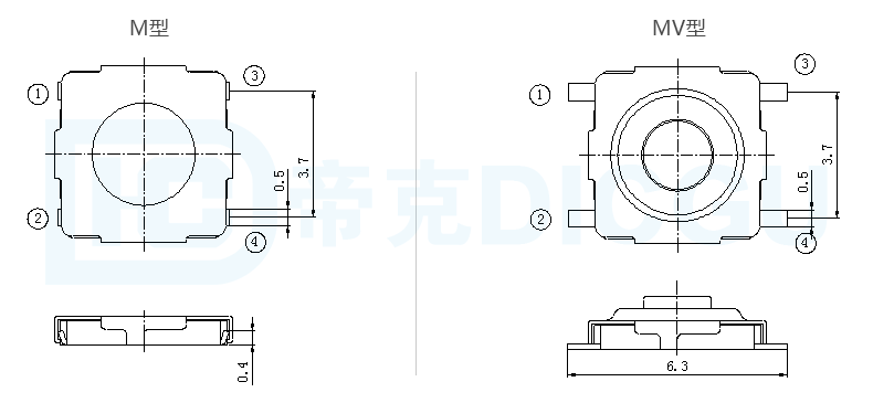 “MV”表示两边端子中间切断折弯平贴P.C.B板,针脚平齐底座切断。