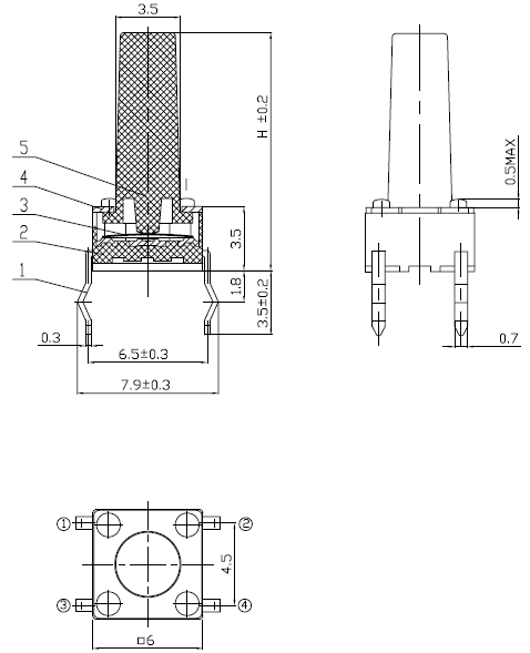 产品规格:6×6×H/H=4.3mm-21mm