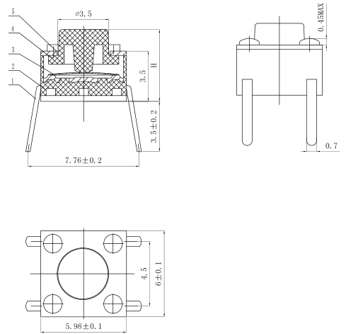 产品规格:6×6×H/H=4.3mm-21mm