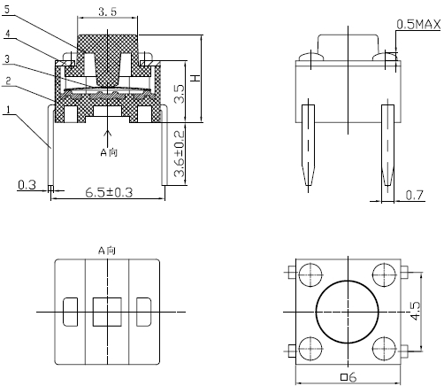 产品规格:6×6×H/H=4.3mm-21mm