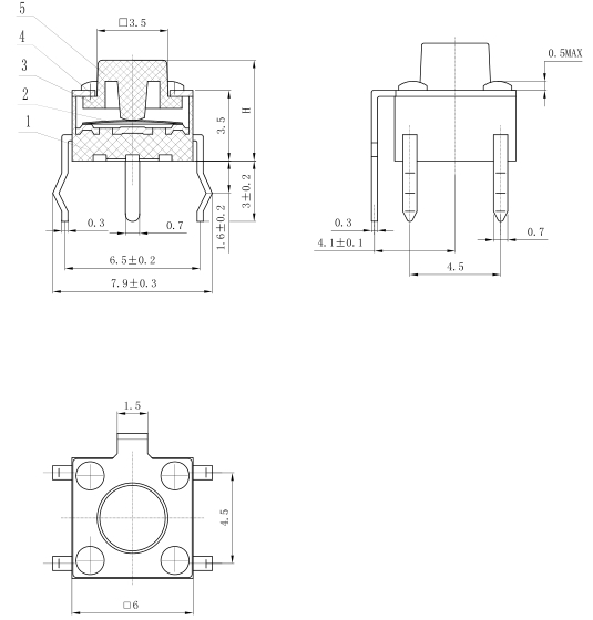 产品规格:6×6×HH=4.3mm-21mm