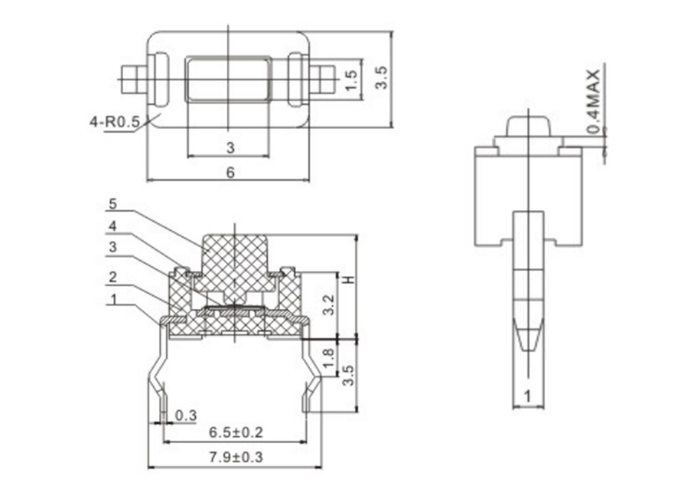 产品规格:6×3.5×H/H=4.3mm/5mm