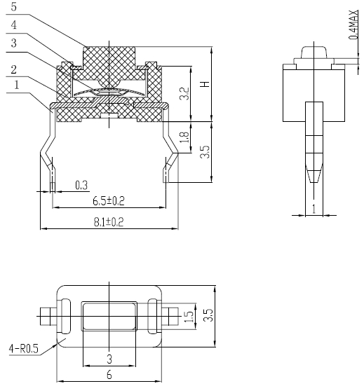 产品规格:6×3.5×H/H=4.3mm/5mm