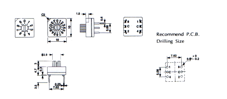 | 1 | RS30310 | 24VDC | 0.5A | 3x3 | 直插式 | 竖直 | 高3.0 mm | BCD 7位 | -25-70°C |