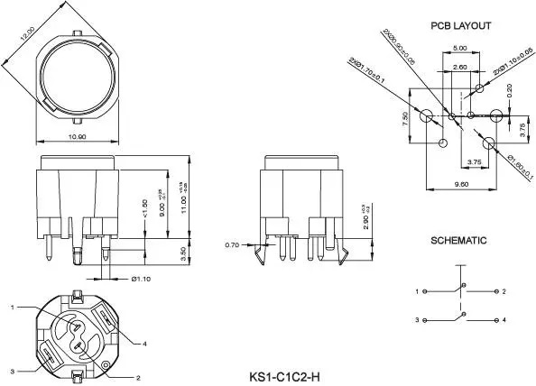 High performance key switch designed for low-level switching. Double stroke version available. Excellent tactile feel. The materials meet medical industry standards. This switch is perfect for Medical device.