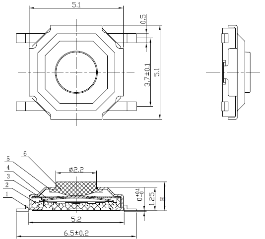 产品规格:5.2×5.2×H/H=1.5/1.6/1.7/2.0/2.5/3.0/4.3mm