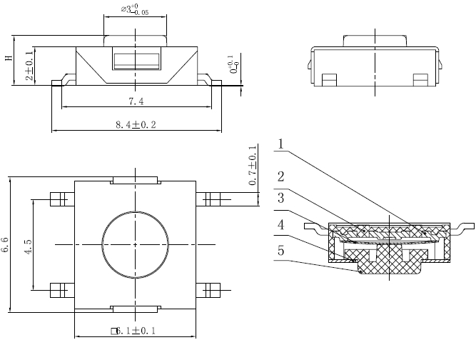 产品规格:6×6×H/H=2.5/2.7/3.0/3.1/3.4/3.7/3.8/4.3/5/5.5mm