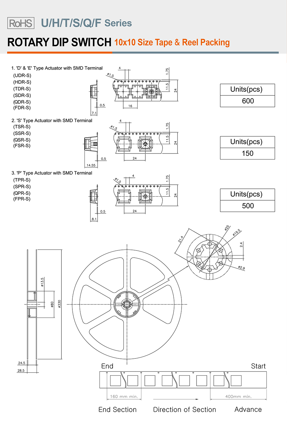 | 90 | FSR-10S | 旋转式 | 轴型 | 顶部 | 10*10mm | 实码 | 42mA/150mA | 10P | 4*1 | SMT | 2.54mm | 管装 | 50pcs |