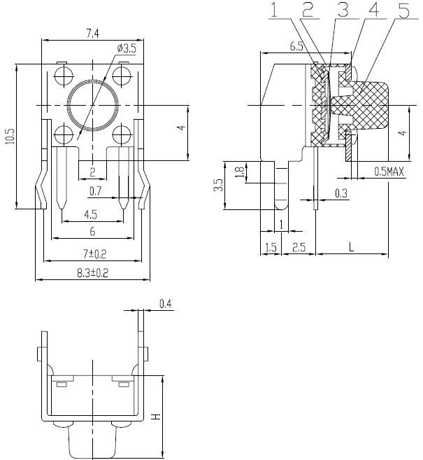 产品规格:6×6×L/L=3.15mm-19.85mm