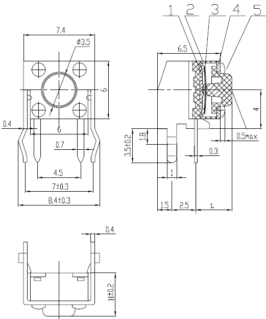 产品规格:6×6×L/L=3.15mm-19.85mm