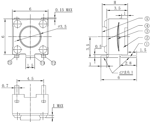 产品规格:6*6*H/H=4.3MM-17MM