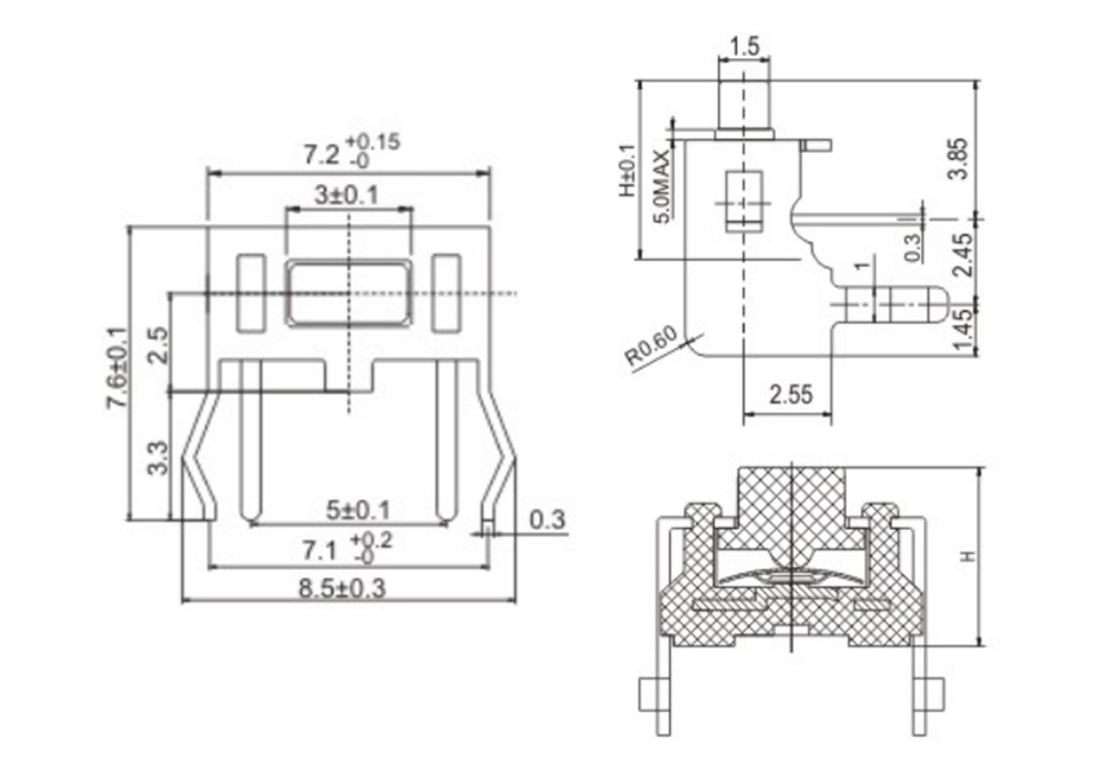 产品规格:6×3.5×H/H=4.3mm/5mm