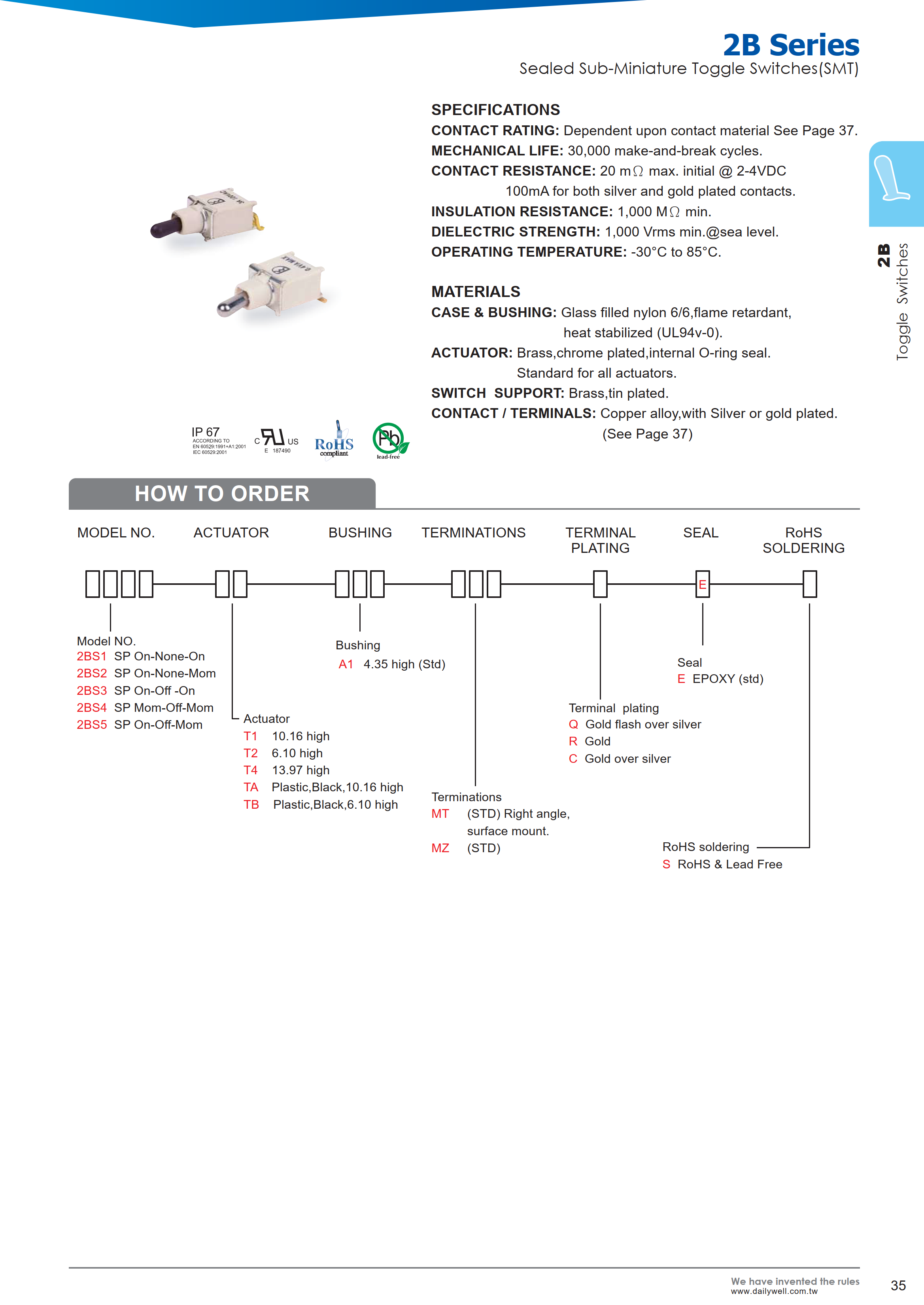 2B系列摇头开关是一款IP67等级的小型SMD开关,提供各种开关功能。 其应用包括电信设备、仪器仪表、网路设备、医疗设备等。