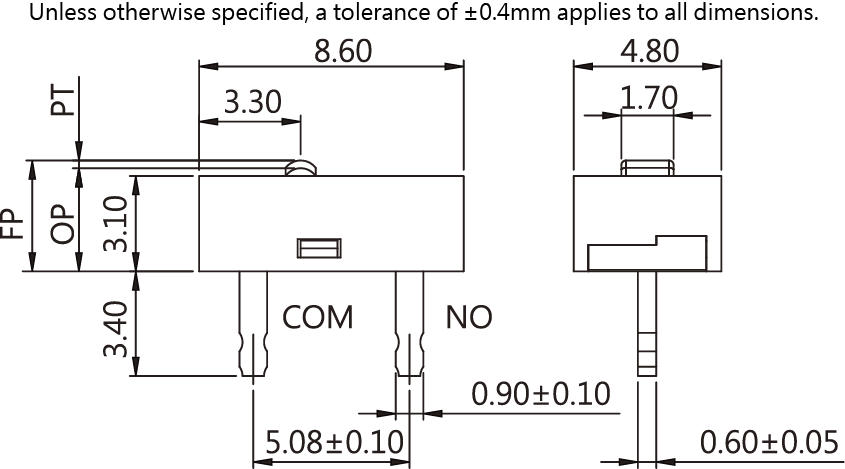 SPECIFICATIONS Operating frequency(electrical): 120 Operation / mim Contact resistance: 100m Ω(max) Insulation resistance(Or at 250 VDC) 100M Ω(Min) Service life(electrical) Min. 5,000,000 Operations