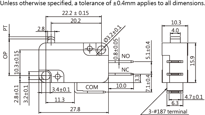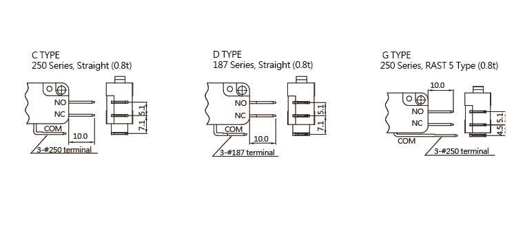 SPECIFICATIONS Operating frequency(mechanical): 120 Operation / mim Operating frequency(electrical): 10~30 Operation / mim Contact resistance: 30m Ω(max) Insulation resistance(at 500 VDC) 100M Ω(Min) Service life(mechanical) Min. 5,000,000 Operations Service life(electrical) Min. 10,000 Operations