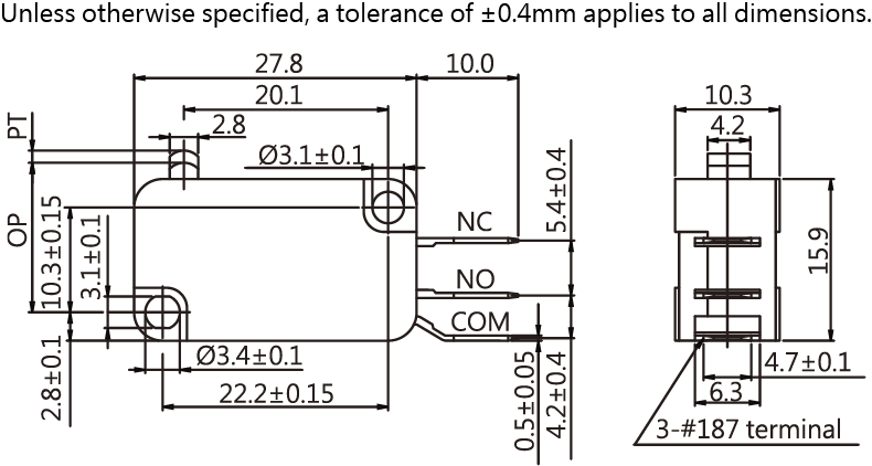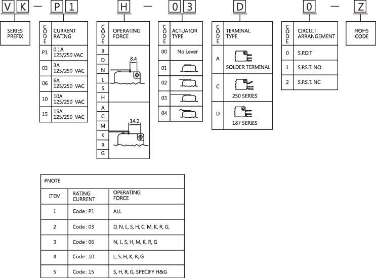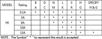 SPECIFICATIONS Operating frequency(mechanical): 120 Operation / mim Operating frequency(electrical): 10~30 Operation / mim Contact resistance: 100m Ω(max) Insulation resistance(at 500 VDC) 100M Ω(Min) Service life(mechanical) Min. 10,000,000 Operations Service life(electrical) 3A~15A- Min. 6,000 Operations