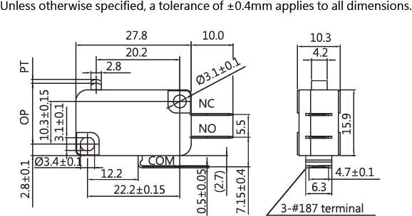 SPECIFICATIONS Operating frequency(mechanical): 120 Operation / mim Operating frequency(electrical): 10~30 Operation / mim Contact resistance: 100m Ω(max) Insulation resistance(at 500 VDC) 100M Ω(Min) Service life(mechanical) Min.10,000,000 Operations Service life(electrical) 5A-Min.10,000 Operations