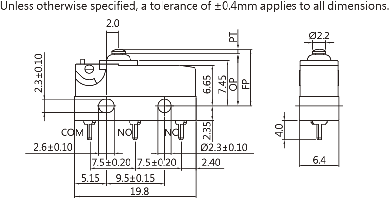 SPECIFICATIONS Operating frequency(mechanical): 120 Operation / mim Operating frequency(electrical): 10~30 Operation / mim Contact resistance: 30m Ω(max) Insulation resistance(at 500 VDC) 100M Ω(Min) Service life(mechanical) Min. 2,000,000 Operations Service life(electrical) Min. 10,000 Operations