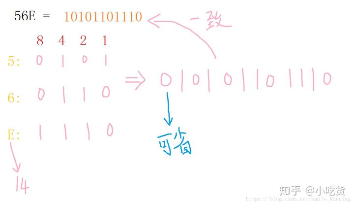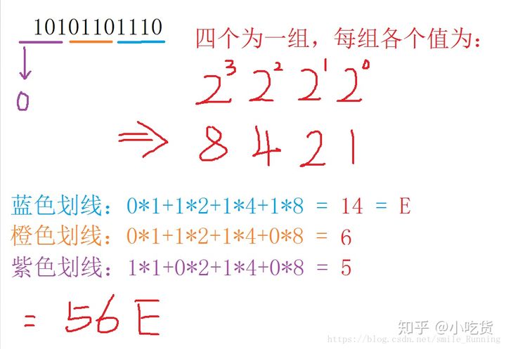 二进制数:10101101110 转 十六进制数:56E