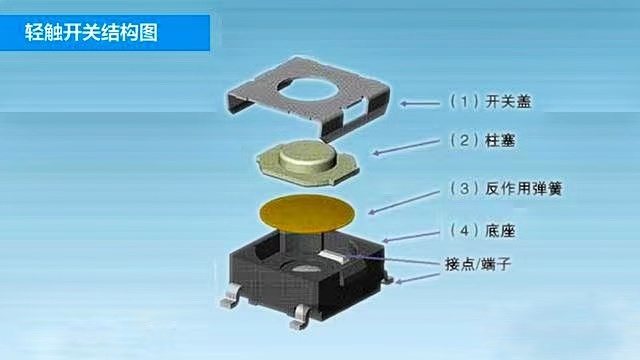 接触电阻:指轻触开关开启时接触点之间的电阻值,通常以欧姆(Ω)为单位。接触电阻越小,表示轻触开关的导电性能越好。